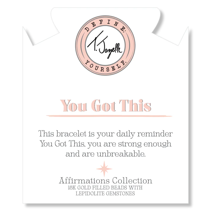 18K Yellow Gold Filled Lepidolite Beaded Bracelet - You Got This