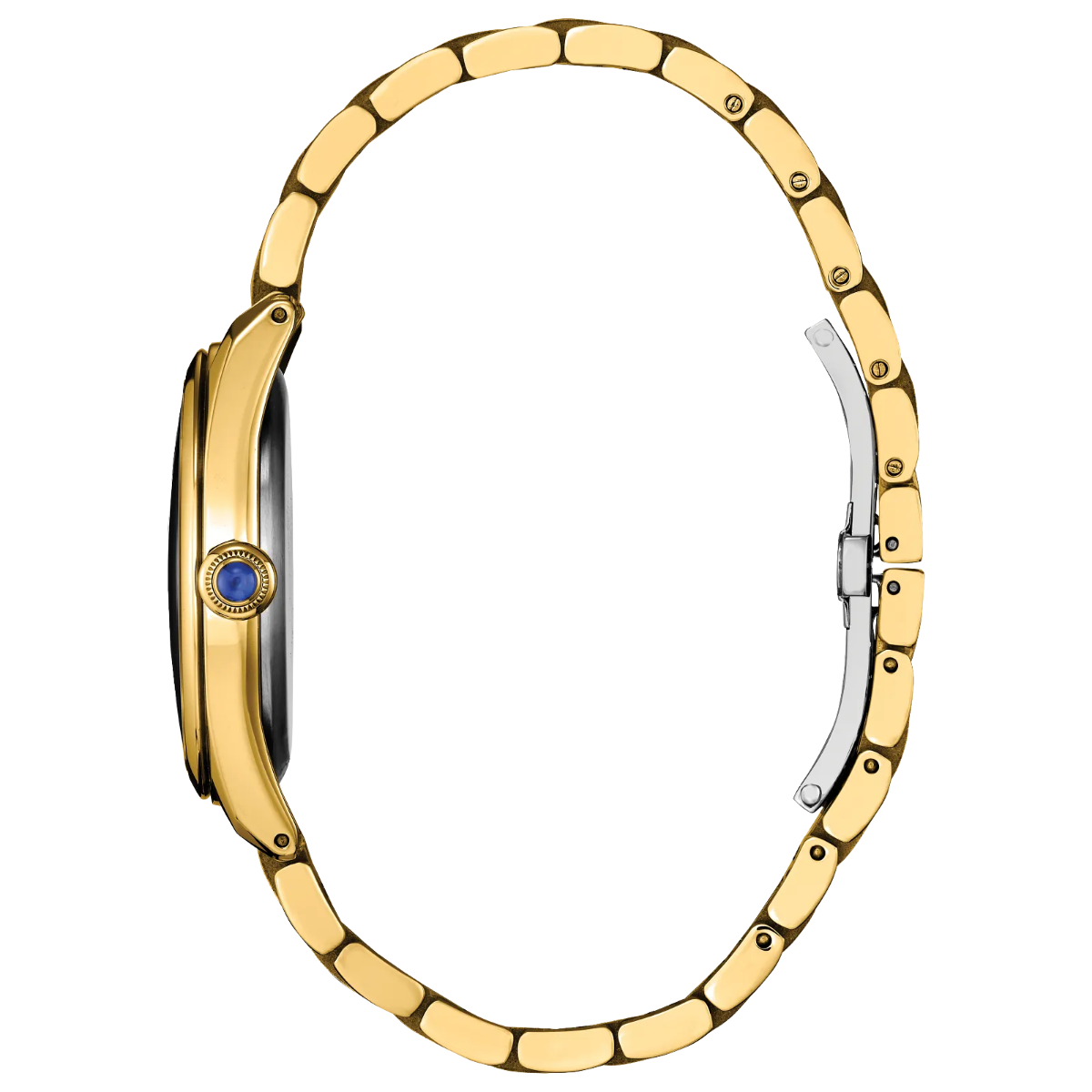 CWhether it be a night on the town or a day in the office, the Citizen L “Classic” is a versatile watch that's ready for anything. Perfectly elegant with just a touch of sportiness, the timepiece features a yellow gold-tone stainless steel measuring 31.5mm, with a namesake round case connecting via faceted lugs to a five-link, matching bracelet. The look is punctuated by a synthetic sapphire-set crown.