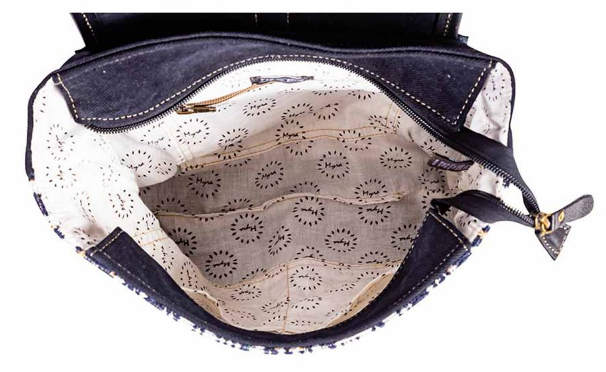 This elegant backpack presents a combination of beautiful colors and textures! Stunning woven upcycled rug is embraced by ebony leather and ebony woven canvas. Zipper-close top with flap that include clasp closure. The durable shoulder straps are in duo-tone canvas and matching ebony leather. Immensely appealing!