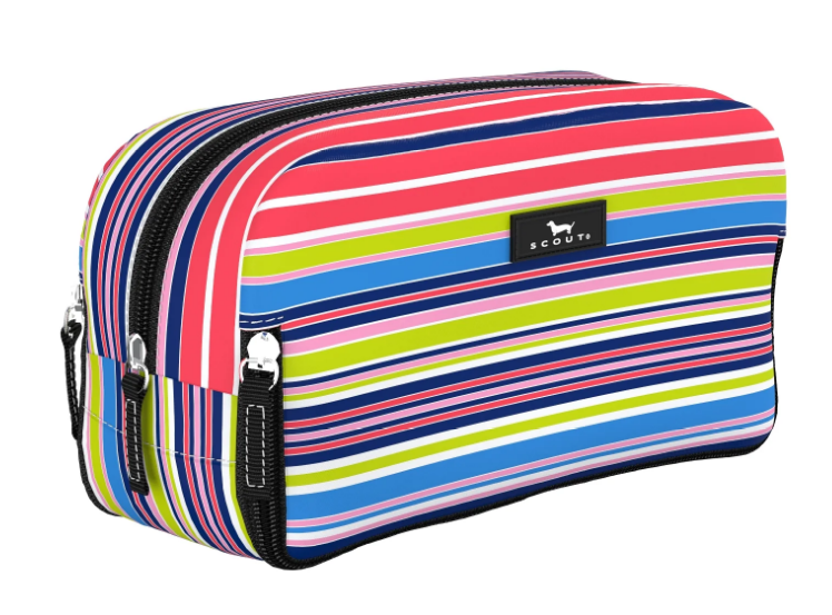 SEPARATE BUT TOGETHER. Meet the simple solution to toiletry and makeup organization, with three separate compartments (larger one on top, two smaller ones on bottom) because no one wants their toothbrush and hairbrush in the same place. Also fantastic for organizing pencils, pens, and craft/school supplies. Easy clean inside and out, of course.