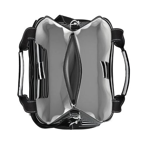 THE ULTIMATE BABY TRAVEL BAG: A PLACE FOR EVERYTHING. Stylish, practical, and highly functional, this hard-working bag has an abundance of pockets (lined for moisture-resistance) to stay organized on the go and an insulated compartment to keep three 12-oz bottles cool. Comfortable to carry fully loaded, this bag's trolley sleeve makes it the perfect travel solution. Paired with our Game Changer changing mat, Bag of Tricks pouch, and Little Nipper pacifier case, parents will be ready for anything.