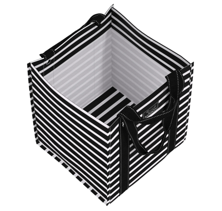 GROCERY GAME-CHANGER, HOLDS 2X AS MUCH. Elevate your grocery game with the Market Tote! You won't find a bigger, better, stronger, or cuter bag for your daily bread. No double bagging necessary. Best bought in multiples (and great for gifting), the Market Tote has a big square bottom and holds 2x as much as typical grocery bags. Two sets of straps set it apart from the pack. Keep in your car trunk at all times and prepare for compliments from fellow shoppers.