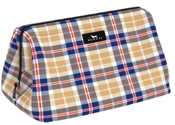 Open… WIDE! Designed for maximum access, this easy-clean bag not only opens up wide but it stays open thanks to a built-in wire frame. Ideal for travel (three-ounce bottles fit upright) or at-home countertop use. Smaller version also available.