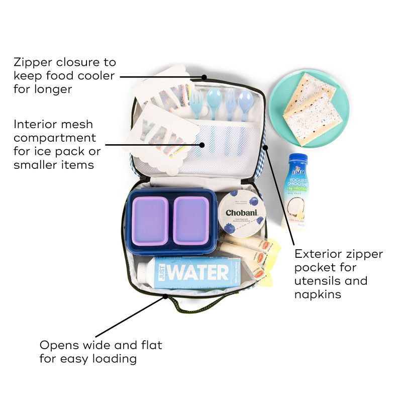 Just like the one you had in grade school, only better. This slim-profile, traditional-shaped lunch cooler opens flat (like a book) for easy loading, then zips shut and slides easily into a larger bag or backpack for transport. The interior mesh compartment is perfect for your ice pack, juice boxes, or smaller food items, and the exterior zipper pocket welcomes utensils and napkins.