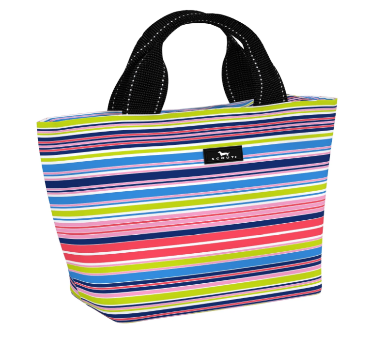 OUR MOST POPULAR LUNCH BOX. Everyone loves our Original Lunch Bag! Your new lunch date is wide, slim, lightweight, wide at the bottom for easy loading, and fits nicely inside most SCOUT totes. The outside pocket is perfect for napkins and utensils, energy bars, or other treats. Also makes a great insulated sunscreen bag for hot summer days.