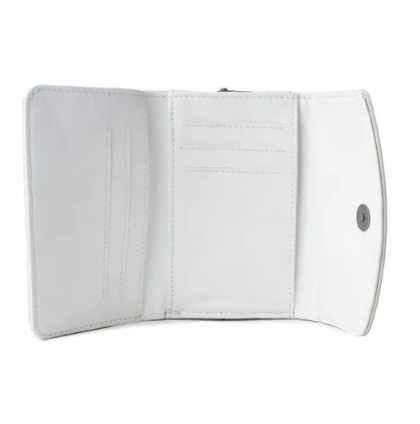 Capture the essence of Western elegance with this dainty treasure, featuring the look of hand-tooled leather adorned with sparkling crystal-studded desert blooms. This petite kiss-lock coin purse showcases delicate feather scrollwork in antique bronze against pearl-white leather. A perfect blend of prairie romance and practical charm for the modern cowgirl.
