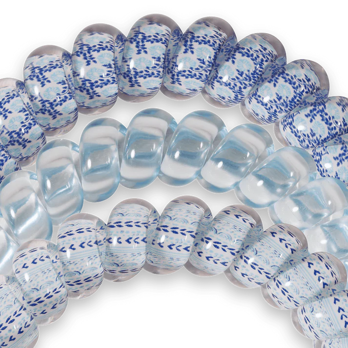 Hampton Bay Large Hair Ties in White Blue offer a strong grip without damage, doubling as a chic wrist accessory when not in use. Your new favorite hair essentials all year round.