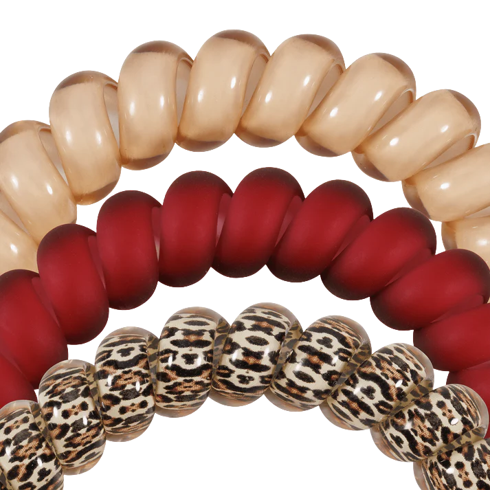 Wild SIde Large Hair Ties in Burgundy and Beige offer a strong grip without damage, doubling as a chic wrist accessory when not in use. Your new favorite hair essentials all year round.
