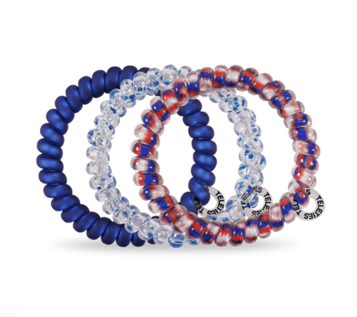Keep your hair on lock with Fire-workin' It TELETIES! These red, white, and blue hair ties not only provide a strong hold without damage, but also double as a stylish bracelet. Perfect for any season, these hair essentials will become your new favorite accessory!